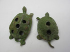 Pair Of Antique Cast Iron Metal Turtle Flower Frogs Japanese Ikebana Flower Art