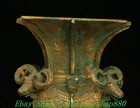 8" Old Chinese Dynasty Bronze Ware Gild Palace 4 Sheep Goat Head Zun Vase Bottle