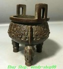 7.4" Old Chinese Bronze Dynasty Lion 2 Ear 3 Leg Incense Burner Censer Statue