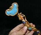 10.2'' Old Chinese Bronze Gilt Inlaid Turquoise Fengshui Lucky Ruyi Statue