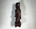 ~antique Chinese Qing Dynasty Carved Wood Figure In Fitted Silk Box