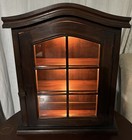 Vtg Lighted Wall Showcase Wood & Glass W/ 2 Wood Shelves 22”x19.75”x6.75”