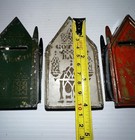 3 Early American C. 1800s Antique Primitive Gothic Church Tin Toy Penny Banks