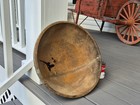 Antique Early Wooden Primitive Dough Bowl Folk Art Green Paint Americana 17 Inch