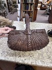 Antique Early Country Primitive Wood Splint Gathering Basket Old Red Paint 11"