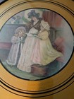 Antique Glass Framed Flue Covers- Lot Of 3 - Victorian Girl Lady Gold Rim 9.5"