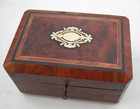 Antique Napoleon Iii French Burl Wood Sewing Box, Brass & Mop Inlay On Top