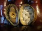 Antique French Handpainted Hinged Egg Glass Box 3 3/4"