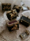 Antique French Pierced Ormolu Miniature Doll Beveled Glass Small Ring Box