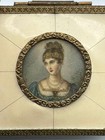 Antique French Empire Portrait Miniature, Woman, Table Snuff Box, Hair Art