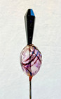 Antique Hat Pin Blown Amethyst Art Glass Faceted Black Top Extra Long 9 3/4”