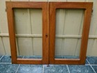 Vtg Pair Oak 6 Lite Glass Wood Cabinet Window Cupboard Doors 20x42 Old 1504-25b