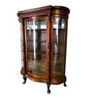 Antique Tiger Oak Curved Glass Cabinet
