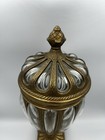 Vintage Hand Blown Bubble Glass Brass Lidded Apothecary Baroque Jar