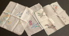 Vtg Lot 8 Hanky Scallop Embroid Crochet Applique Blue Silk Linen Cotton Lace