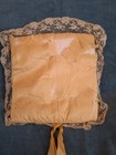 Vintage Silk Lace Trim Hanky Holder Peach Boudoir Lingerie Embroidered Floral