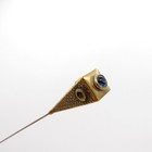 Antique Hatpin Brass Flower Blue Glass Center