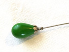 Beautiful Vintage Green Glass Hatpin Silver Tone