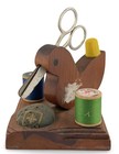 Antique Wood Treenware Sewing Pin Cushion Needle & Mending Thread Holder