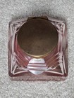 Antique Glass Inkwell Square Hinged Round Brass Lid