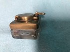 Antique Solid Brass Inkwell With Hinged Top & Glass Well Insert, Nice & Heavy!