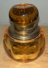 Antique Victorian Hand Blown Encased Controlled Bubble Glass Ink Well Amber