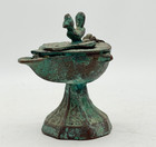 Antique Egyptian Patina Bronze Islamic Oil Lamp With Bird Design