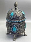 Islamic Silver Inlaid Bronze Inkwell Collection Piece Central Asia Hand Work