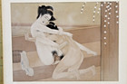Antique Framed Japanese Erotic Shunga Art Bath