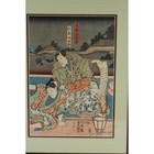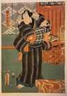 Antique Japanese Woodblock Print By Utagawa Kunisada Man With A Child C.1853