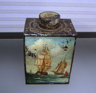 Antique Nautical Folk Art Ship Toleware Hand Painted Tea Caddy Canister 19th C