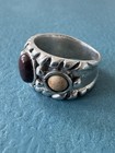 Antique Navajo Native American .925 Sterling Silver Red & Yellow Jasper Ring
