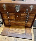 Antique Oak Wooden Engineers Toolbox Collectors Cabinet Watchmakers Vintage