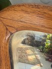 Antique 1920s Oak Wood Beveled Wall Mirror Curved Edges 26x20.5"