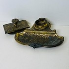 Antique Ornate Cast Brass Inkwell And Ink Blotter Desk Topper Missing
