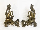 Antique French Rococo Gilt Bronze Fireplace Andirons - Ornate 19th C. Chenets