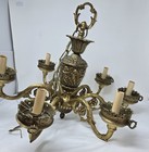 Vtg Gilded Ornate Bronze Ceiling Light Chandelier 6 Arms Cherubs French Style
