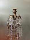 Antique Pair Spanish Brass Candle Wall Sconce With Teardrop Crystal Prisms