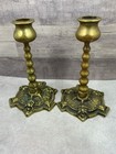 Vintage Pair Heavy Solid Brass Engraved Candle