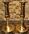 Pair (2) 8" Antique-style Brass Chamberstick Candle Holder Push-up Lever
