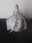 Antique Half Porcelain Doll Pin Cushion Elegant Woman Lace Puff Dress Hat 7.25"