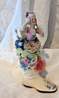 Antique Sewing Pin Cushion Porcelain Half Doll Ceramic Boot Floral 6.5" Tall