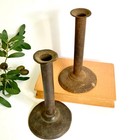 Antique Primitive Metal Hog Scraper Candle Holders No Lever Set Of Two Rusty