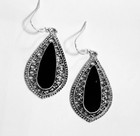 Sterling Silver With Antique Silver Black Enamel Teardrop Earrings, Made In Usa