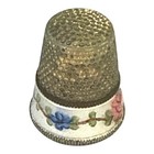Antique Sterling Silver Floral Guilloche Enamel Sewing Thimble