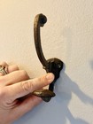 4 Brown Rustic Coat Hooks Antique Style Cast Iron 4.5" Wall Double Restoration