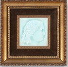 Pair Of Antique Arts & Crafts Roman ? Women Head Glazed Porcelain Ceramic Tiles
