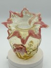 Antique Victorian Bristol Glass Vase Hand Blown Painted Floral Ruffled Pink Glow