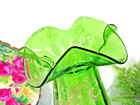 Bohemian Vase Antique Victorian Green Blown Glass Fluted Top Painted 7.5 Inch