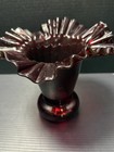 Antique Victorian Hand-blown Satin Glass Vase – Cranberry Ruffled Top – 1880s
